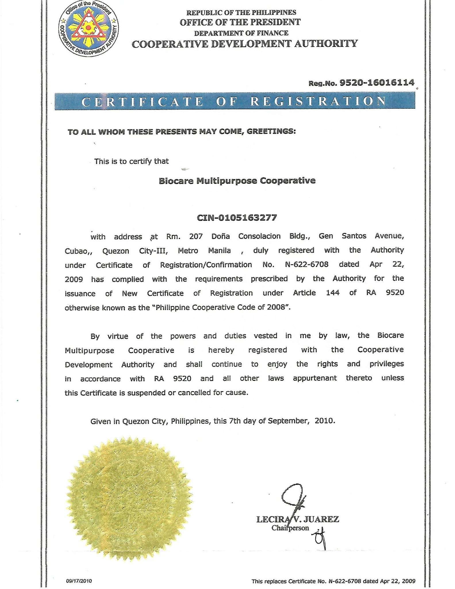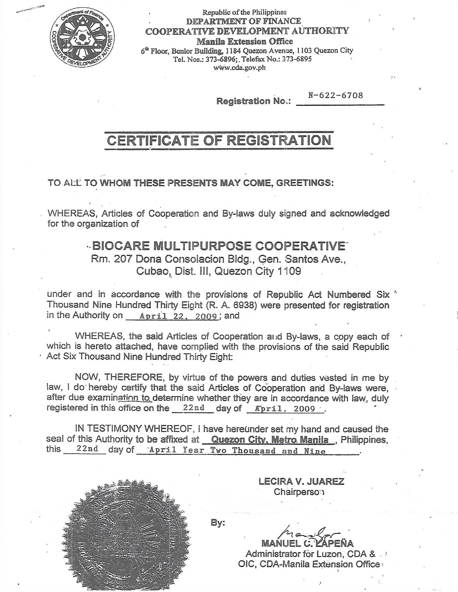 under the Philippine law. It was registered in the Cooperative Development Authority